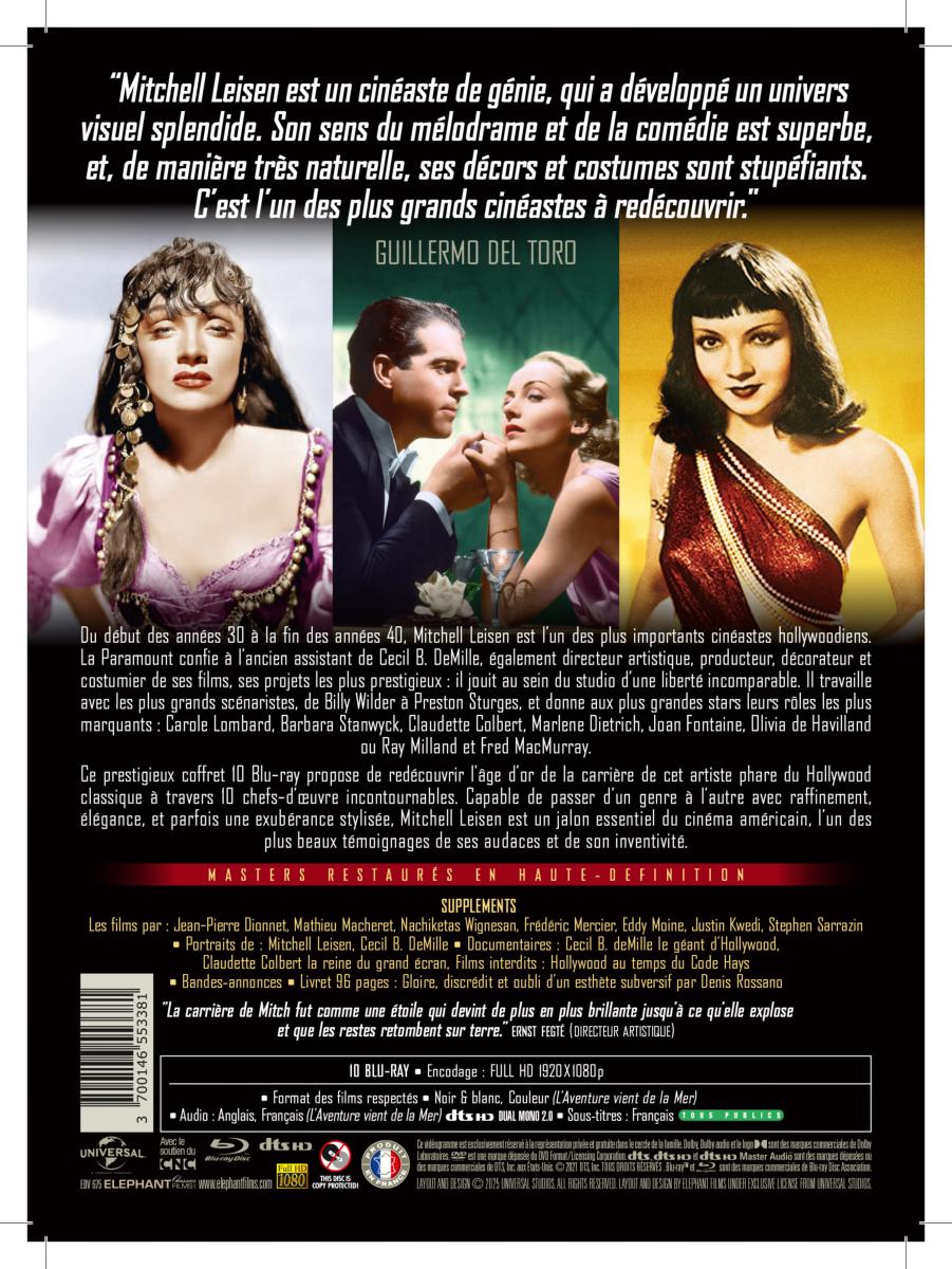 Ce prestigieux coffret 10 Blu-ray propose de redécouvrir l'âge d'or de la carrière de cet artiste phare du Hollywood classique à travers 10 chefs-d'œuvre incontournables. Capable de passer d'un genre à l'autre avec raffinement, élégance, et parfois une exubérance stylisée, Mitchell Leisen est un jalon essentiel du cinéma américain, l'un des plus beaux témoignages de ses audaces et de son inventivité.